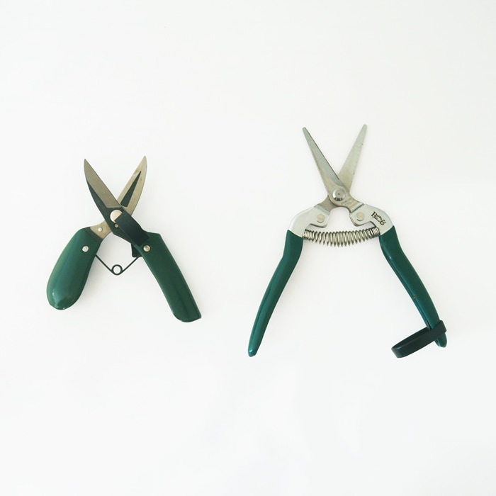 左が万能園芸はさみ、右が芽切りはさみ。