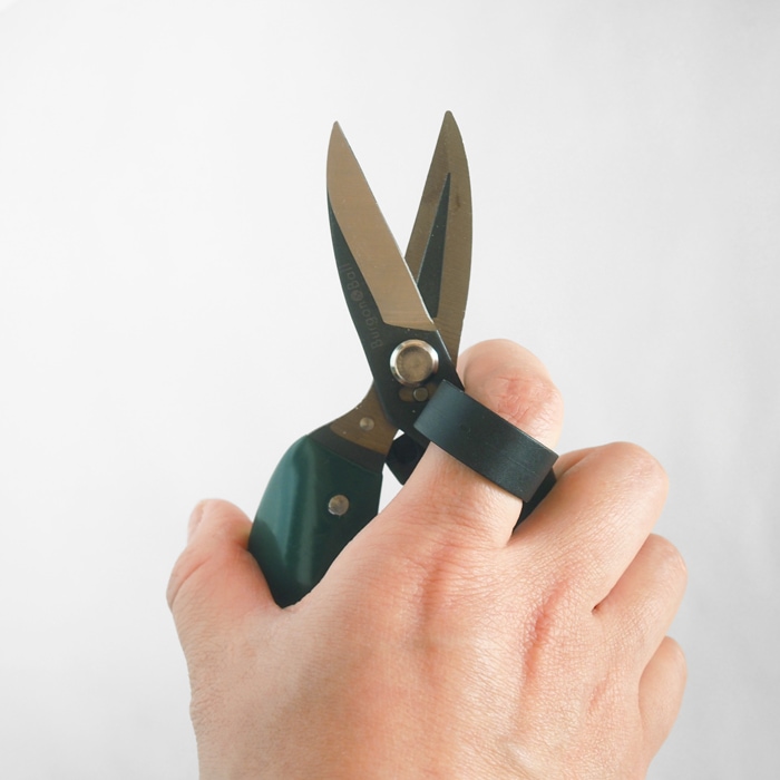 人差し指をしっかりホールドします(万能園芸はさみ)